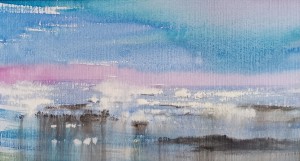 De vegades fas i no saps què fas ni què en sortirà. I al final t’agrada allò que has fet, improvisadament, atzarosament. És el cas d’aquesta marina blava i rosa, esbojarrada, rara (beneïdes rareses!), sens dubte imperfecta tècnicament. El paper és Hahnemühle de més de 400 (un gramatge excessiu per a mi, perquè condiciona molt el resultat), de mesures 20×30 cm.