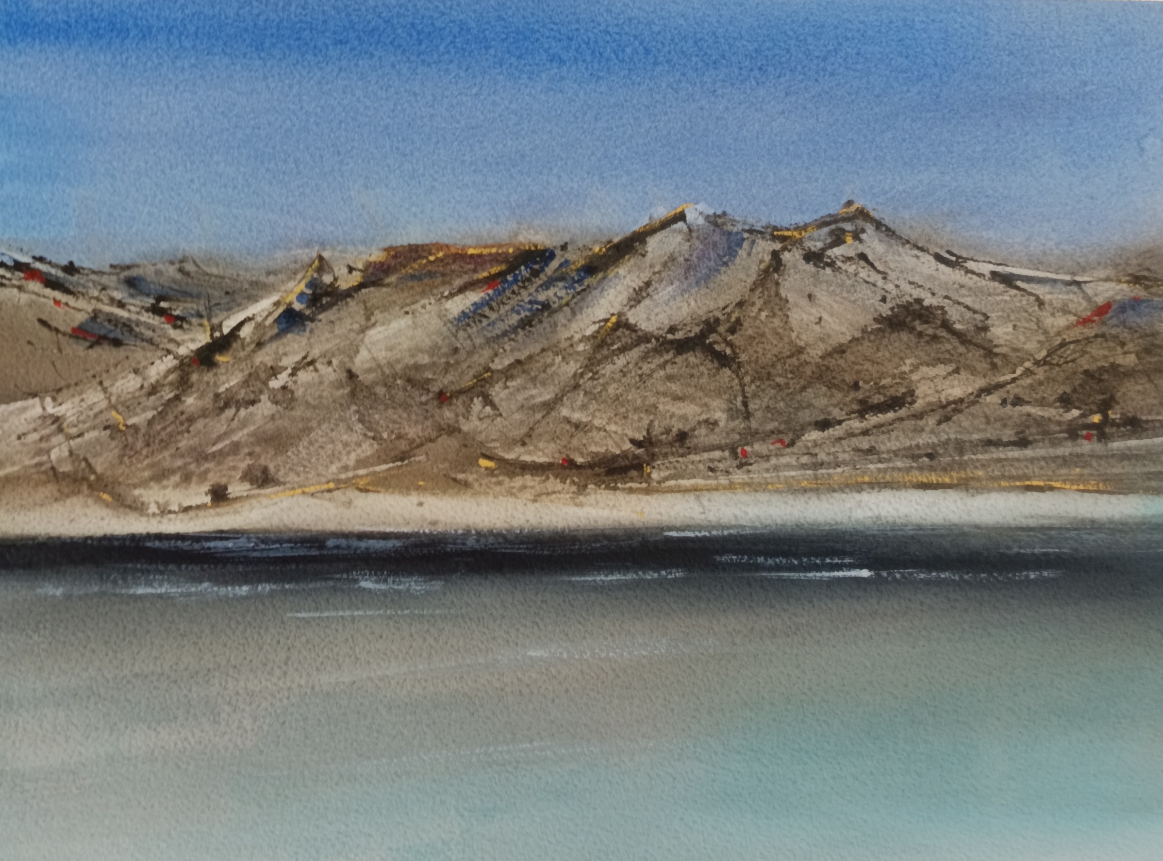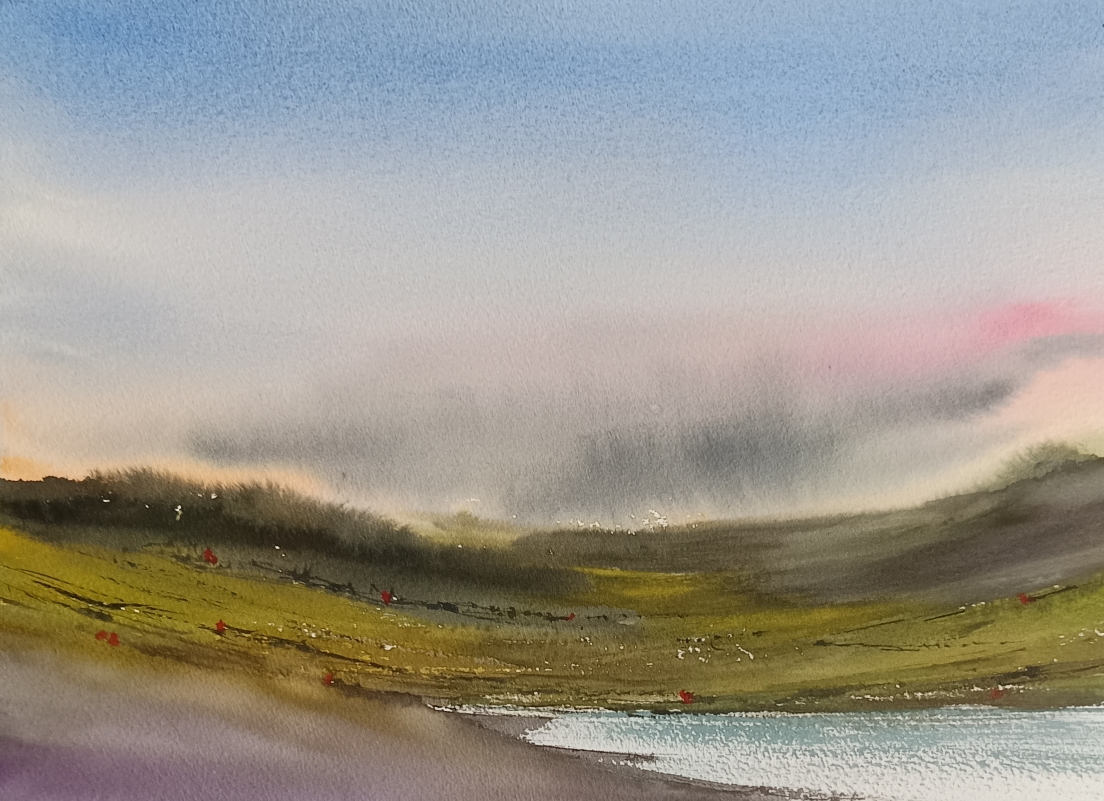 Més pràctiques d’aquests dies. Les dues aquarel.les petites són fetes en paper ja usat (Arches i Saunders Waterford). Les altres dues, en paper nou, Arches de 300 gr., gra gros i 31×41 cm.