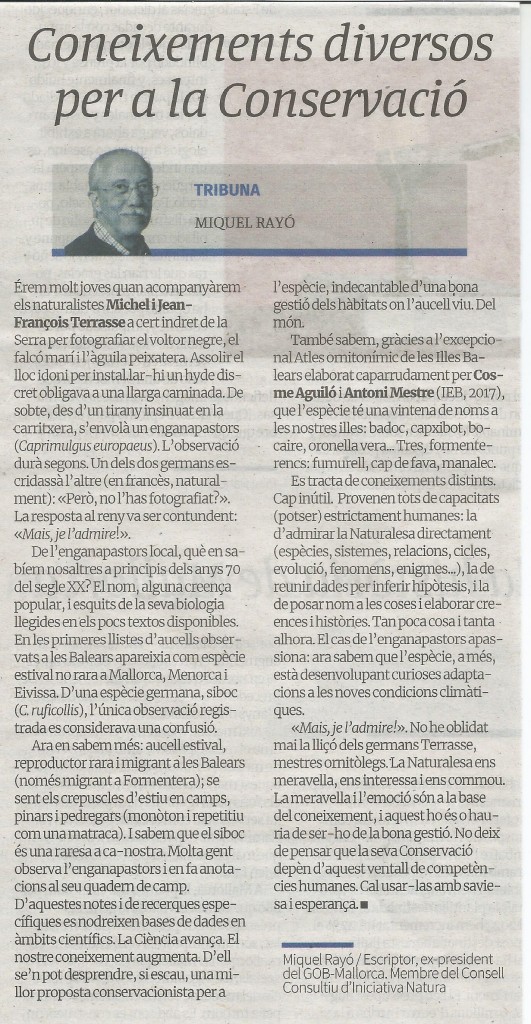 Una nova col.laboració en nom d’Iniciativa Natura, associació conservacionista del Consell Consultiu de la qual en sóc membre.
