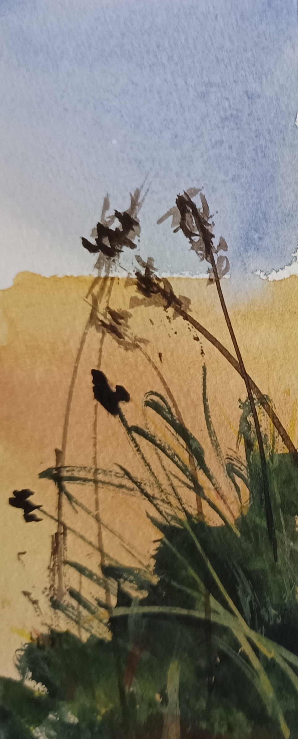 Aquests dies han estat frustrants si ens referim a l’aquarel.la. Res no m’ha sortit prou satisfactori, o quasi res. Potser és perquè o avanç, no explor, no seguesc classes, no tenc continuïtat. He estat embullat amb el projecte sobre els models d’excursionisme i no he dadicat temps a la pintura, també he estat llegint els originals dels premis de Santanyí i Sineu, ja que he format part dels dos jurats… Ah! I la falta de bon dibuix és un obstacle grandíssim. En resum: aquí tenim uns apunts, uns retalls, papers rescatats que, segur, arribaran a parar a la paperera. De tot s’aprèn, clar. I molt més dels errors.